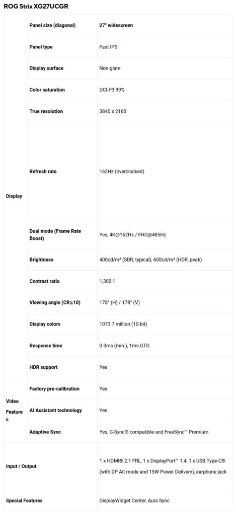 The ROG Strix models offer higher performance options. One model can switch between 4K at 162 Hz and Full HD at 485 Hz, while another offers 4K at 160 Hz and Full HD at 324 Hz. These numbers may sound technical, but they simply mean smoother gameplay and quicker screen updates. Both models also improve response time compared to older versions, which helps in fast reaction games.