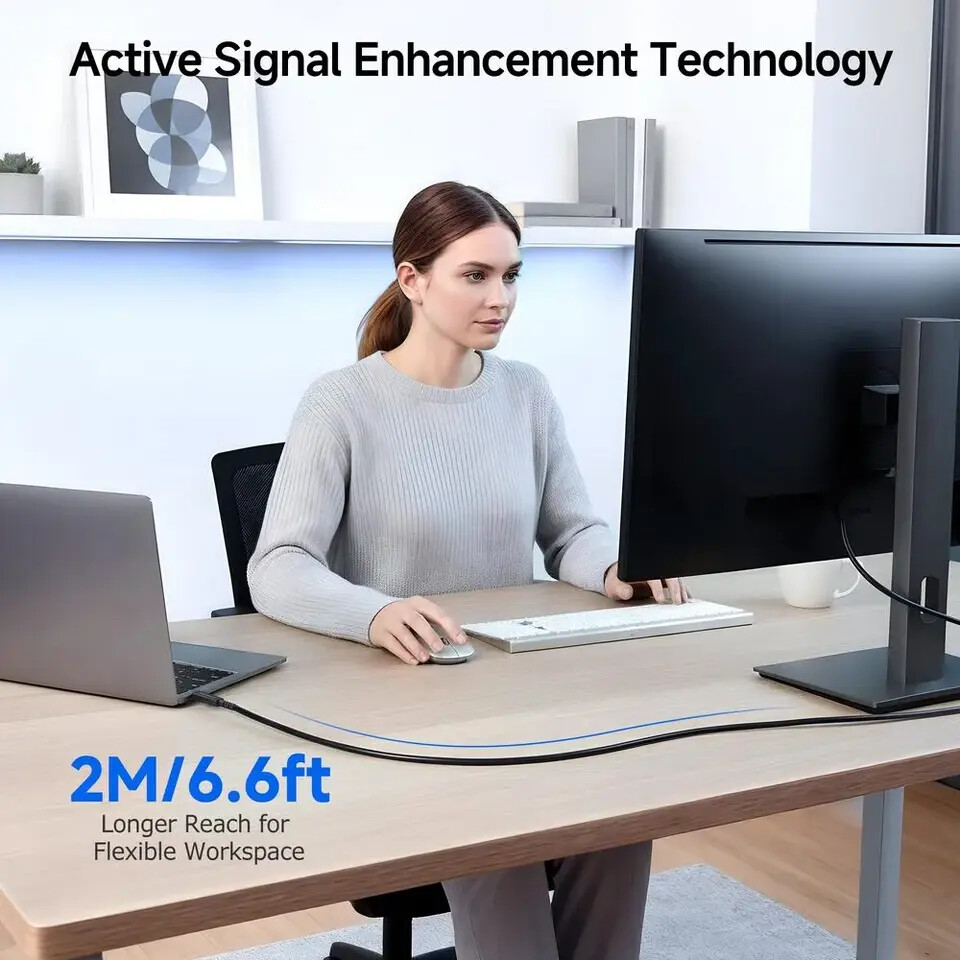 The Thunderbolt 5 active cable supports data speeds of up to 80 Gbps. With Bandwidth Boost turned on, it can reach up to 120 Gbps for video use. This makes it useful for heavy work like video editing, moving large files, and 3D or AI tasks. Even with its longer 2-meter length, the cable keeps full performance, which is not easy to achieve with regular cables.