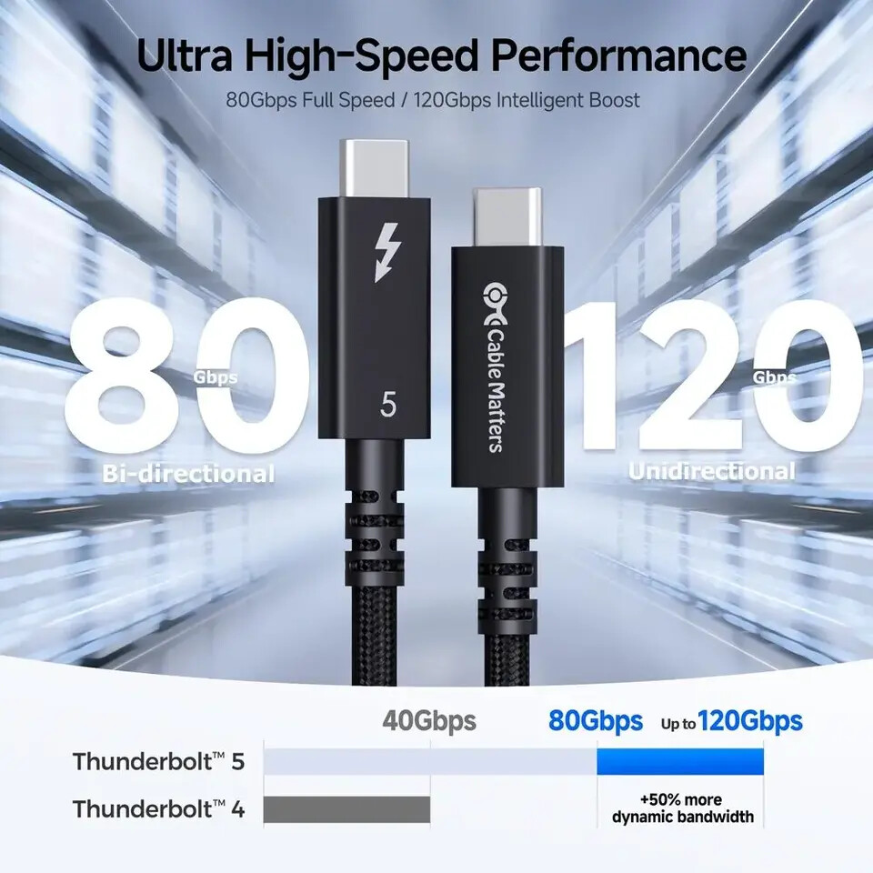 The Cable Matters 2-meter Thunderbolt 5 active cable is available now from the company’s website and selected retailers.