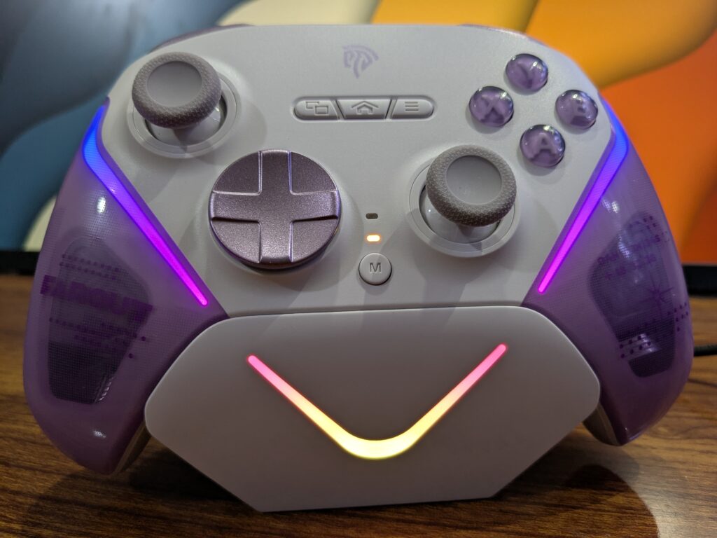 It connects via the included USB Type-C cable, which can be plugged into a PC, console, or wall adapter. Aside from keeping the controller ready to use, the dock also works as stand when you’re not gaming.