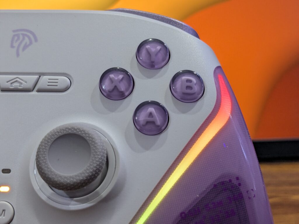The mechanical ABXY buttons have a crisp, satisfying click that makes every press feel deliberate — perfect for fast combos in fighting games or rapid menu navigation. The purple D-pad is accurate and responsive, making platformers and retro games more enjoyable.