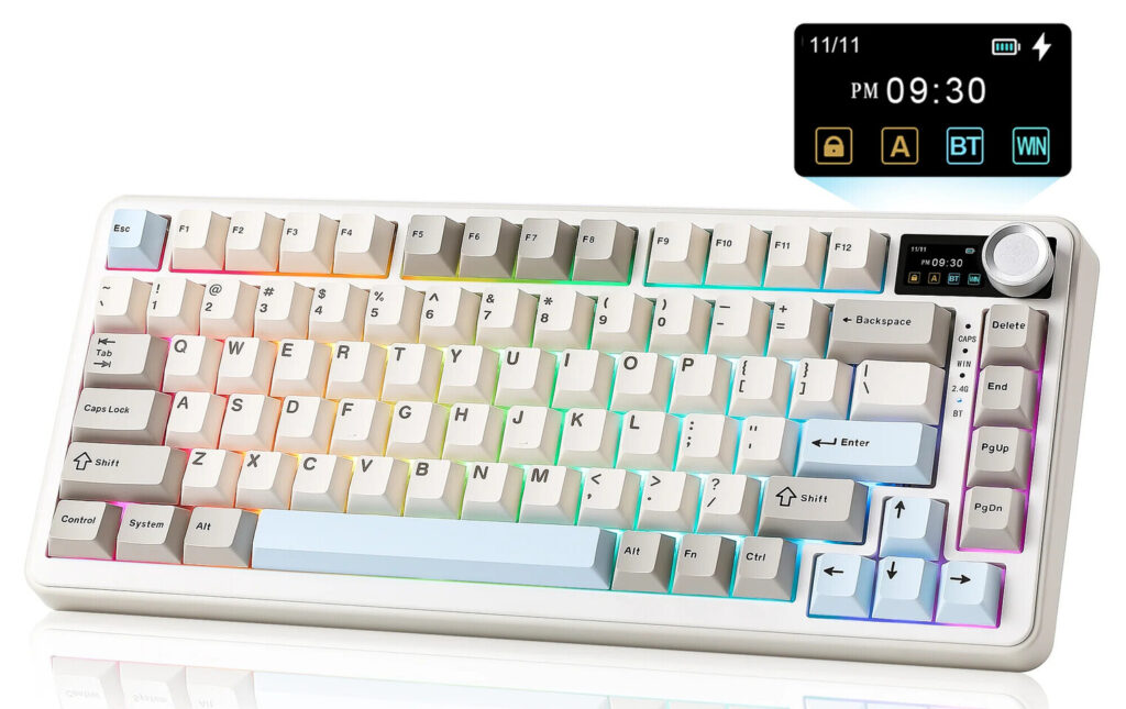 The YUNZII B75 Pro Max is now available, and it brings a fresh mix of beauty and powerful features for keyboard lovers. It comes in four lovely colours Beige, Black, Pink Heart, and White Heart giving users simple options to match their setup. With a smoother knob and a brighter TFT screen, this keyboard feels modern, easy to use, and ready for any daily task.
